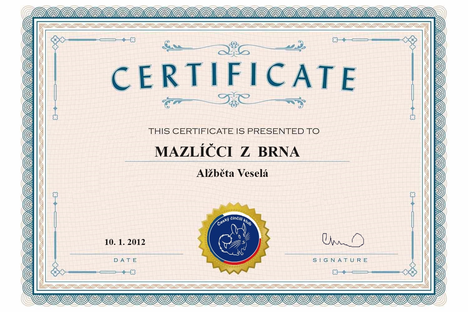 V chovu křečků jsem se po 12 letech chovu (v r.2010) zasloužila o: