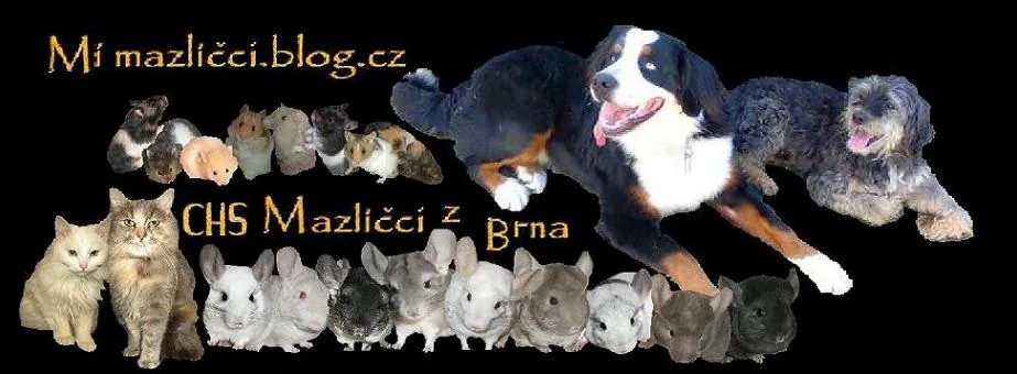 Toto byla moje první hlavička webu v r. 2007. Byli na ní mí dva pejsci, kočička, 2 králíci, 4 činčilky, potkan, 2 pískomilové, 6 křečků, 4 křečíci, 2 myšky, 2 agapornisové, 2 kanárci a akvárium 120l se závojnatkami. Mým chovem dále prošli - plšíci afričtí, rýžovníci čínští, želvičky nádherné, a různorodé rybičky. Krom toho jsme doma měli chov domácích králíků, slepic, hus, korel, andulek a také jsme měli bezrohou kozu a neofému.