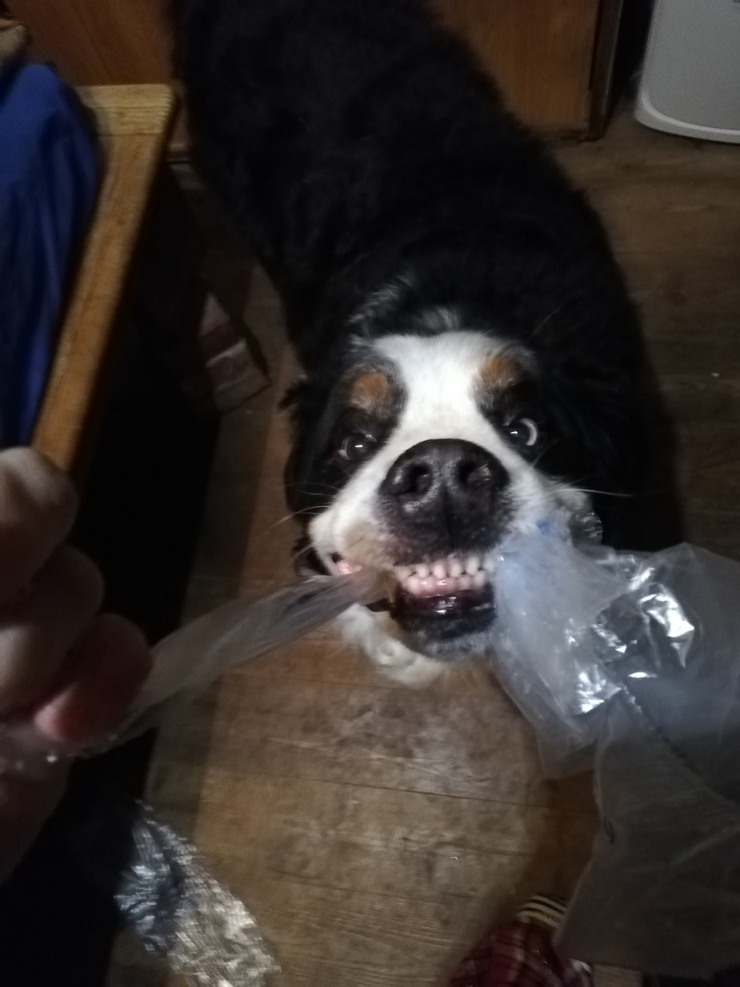 Když jsem adoptovala mého salašníka, bylo mu 9 měsíců a kradl a ničil věci. Většinou nenápadně za zády si něco odnesl a rozkousal to. Byl zvyklý, že ho za to někdo honí, aby mu věc sebral a díky tomu měl od pána pozornost a zábavnou hru. Proto utíkal a ze zábavy uskakoval. My jsme mu místo toho věc nechali a odešli pryč za dveře. On nejdřív pustil hračku, ale když jsme se vrátili, zase ji vzal do tlamy a byl připravený utíkat. My ale znovu odešli a nechali ho tam déle. Tak pochopil, že o jeho hru nemáme zájem. Pak jsme mu donesli hračku pro psy se kterou jsme chtěli, aby si hrál. Drželi jsme ji a tahali se o ni s ním což ho náramně bavilo, pak jsme mu hračku nechali, pochválili ho a dali mu pamlsek. On se tak naučil hrát si s hračkami co mu dáme a ještě nám je nosil, aby jsme si s ním hráli, když on si chtěl hrát.