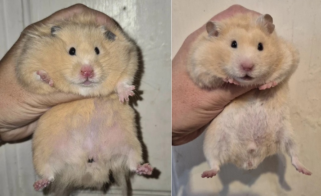 - syrský sameček má ze spodu decentně viditelné kulky, které jsou ale osrstěné takže to pohledu nevadí