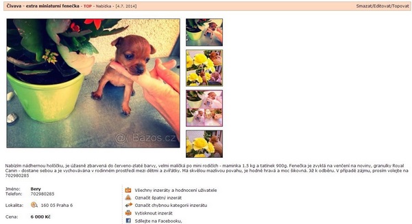 portál Bazoš je rájem překupníků. Tento inzerát patří překupnici z