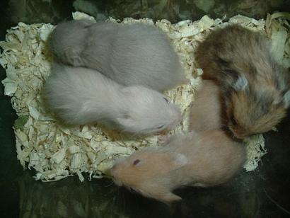 (Holubí šedý sazovitý dlouhosrstý, zlatá želvovinová páskovaná dlouhosrstá saténová)- v tomto vrhu se povedla první norková samička v chovu