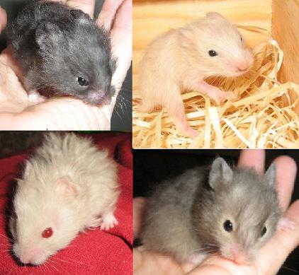 (holubí šedý sazovitý dlouhosrstý, zlatá páskovaná dlouhosrstá saténová)