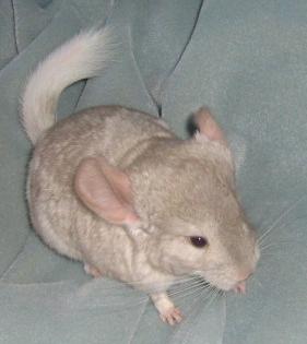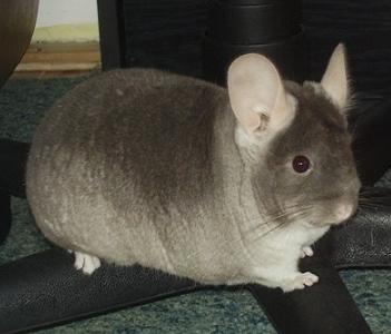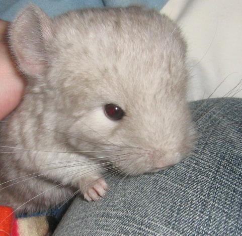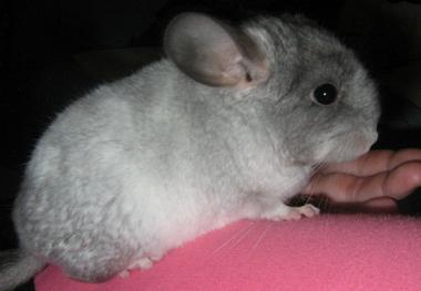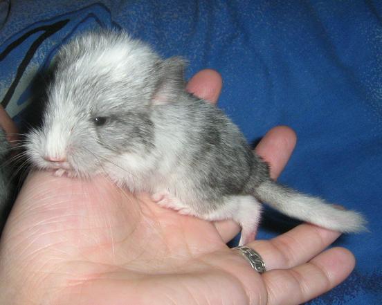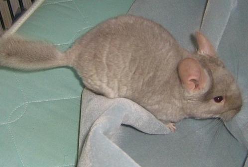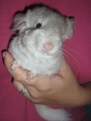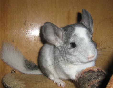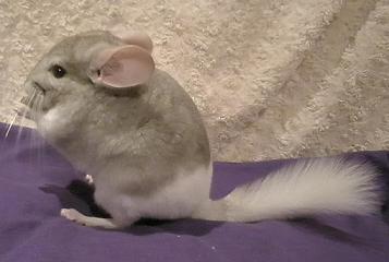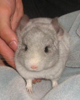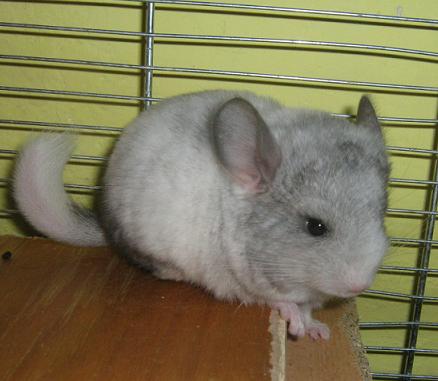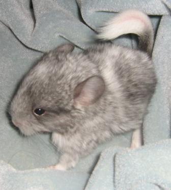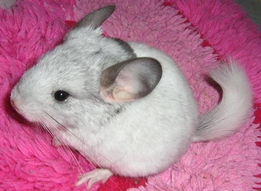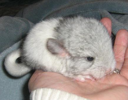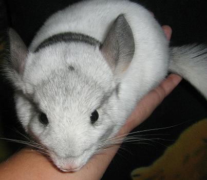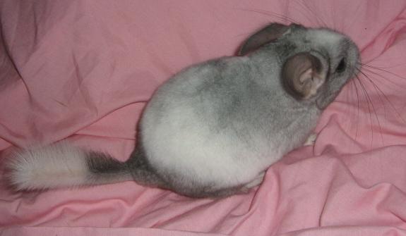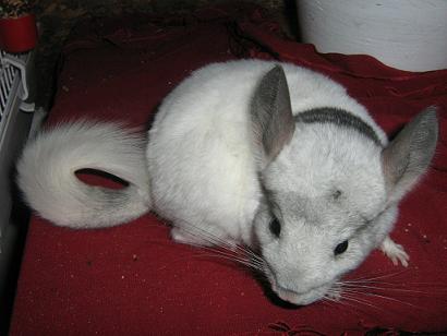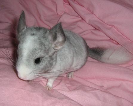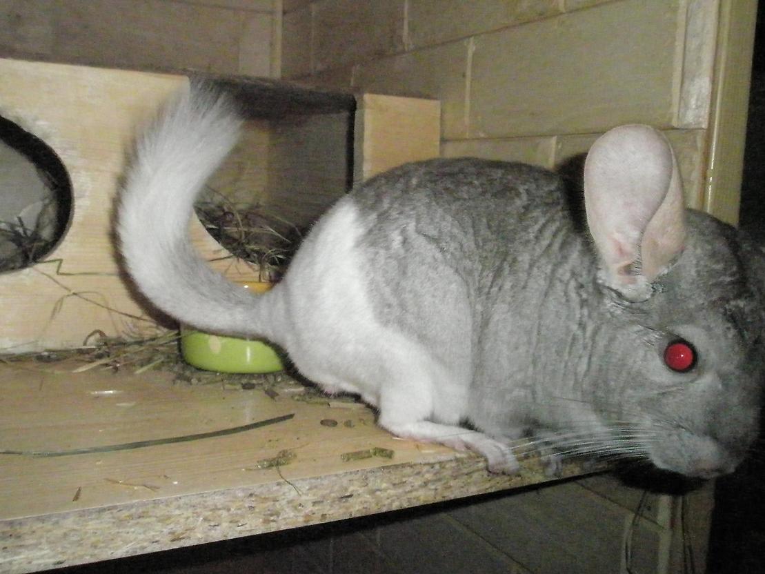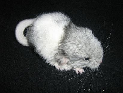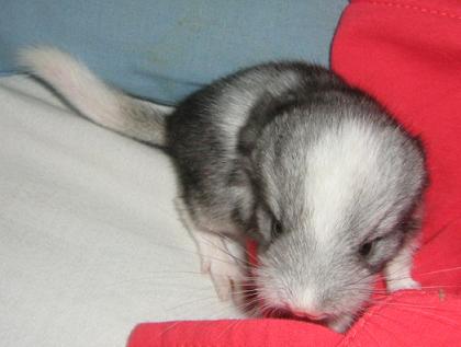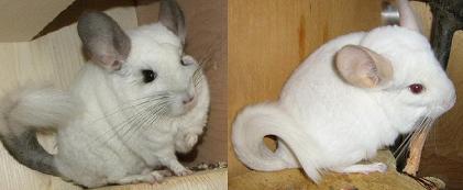 (Dvě bílé činčily se nesmí křížit kvůli lethal faktoru. Toto bylo nešťastné spojení)