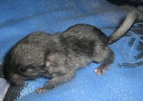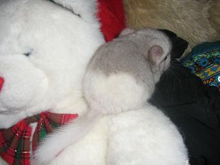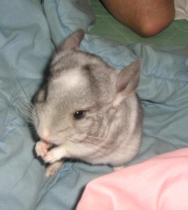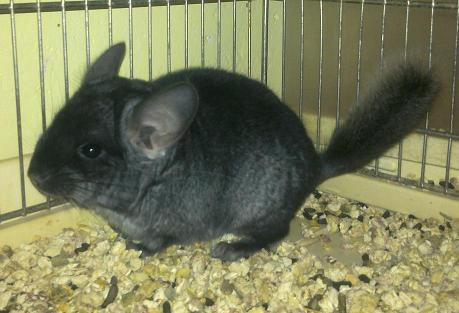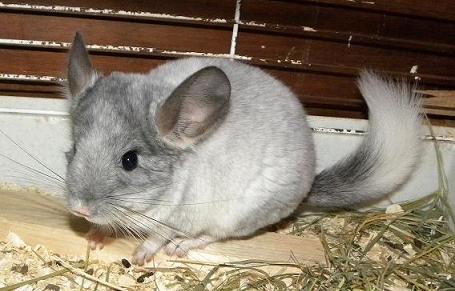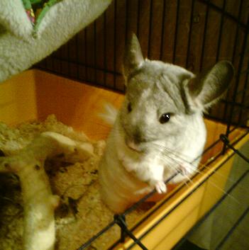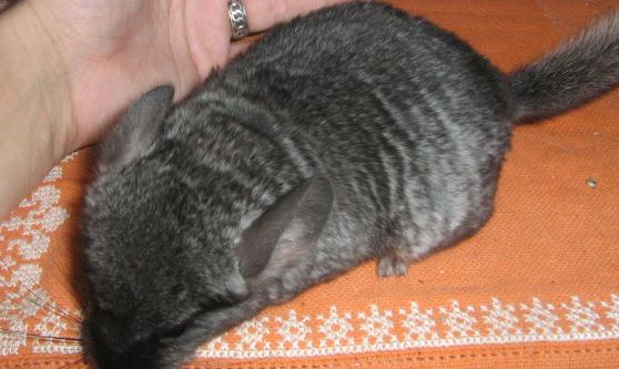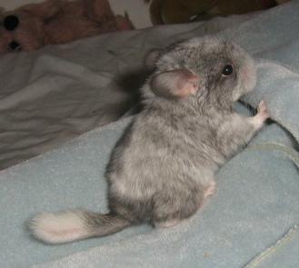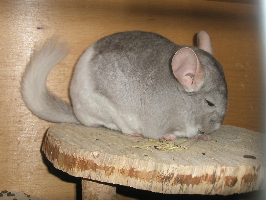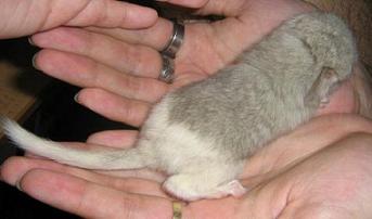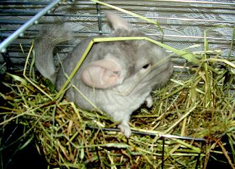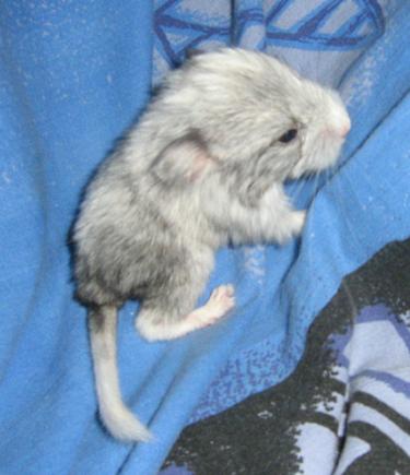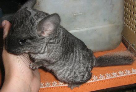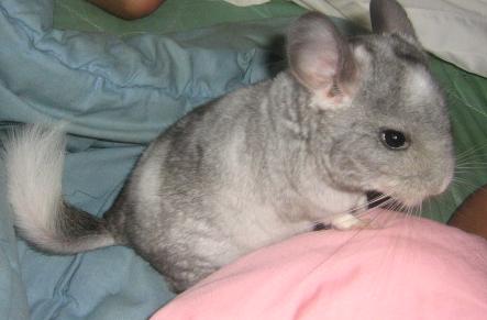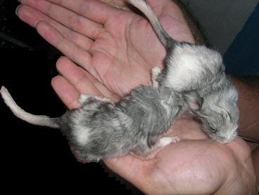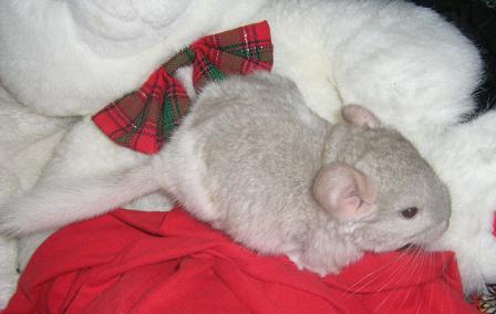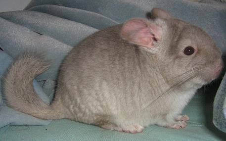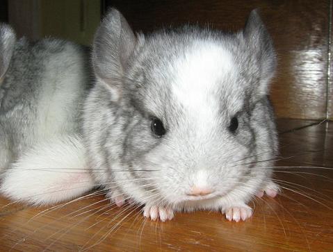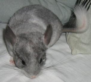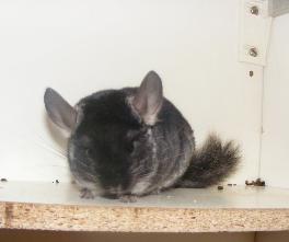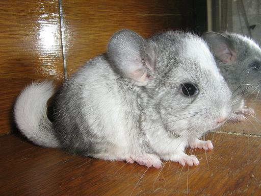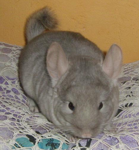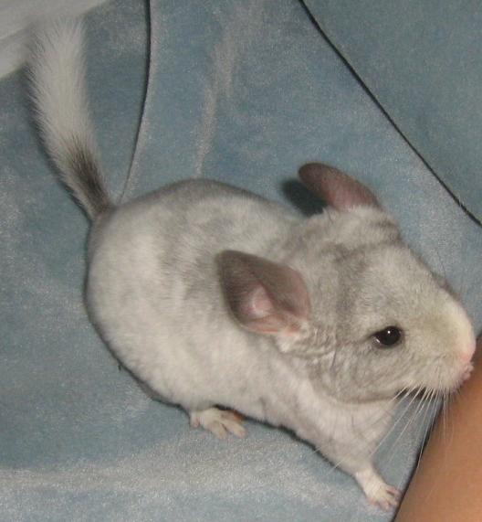 (Dvě bílé činčily se nesmí křížit kvůli lethal faktoru. Toto bylo nešťastné spojení)